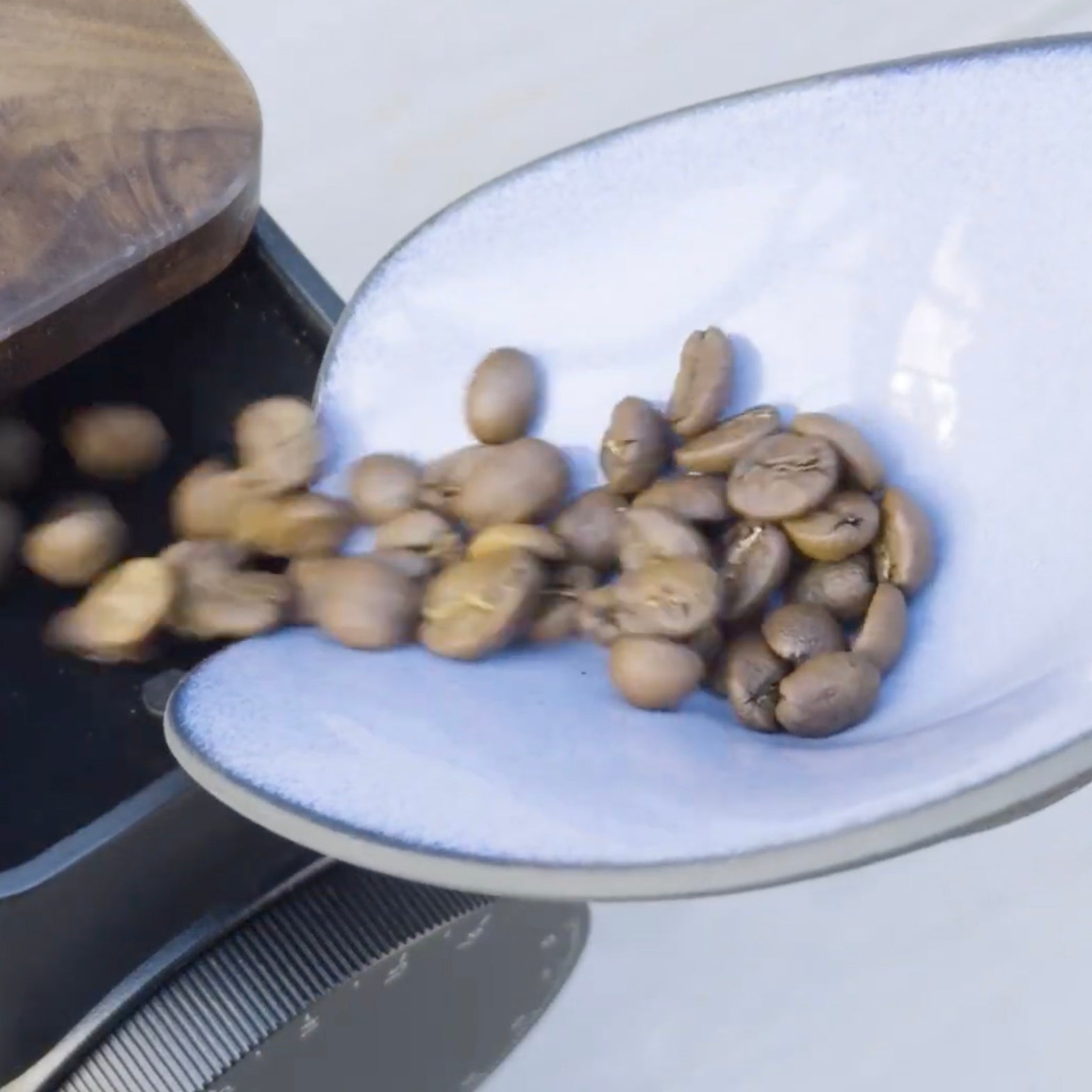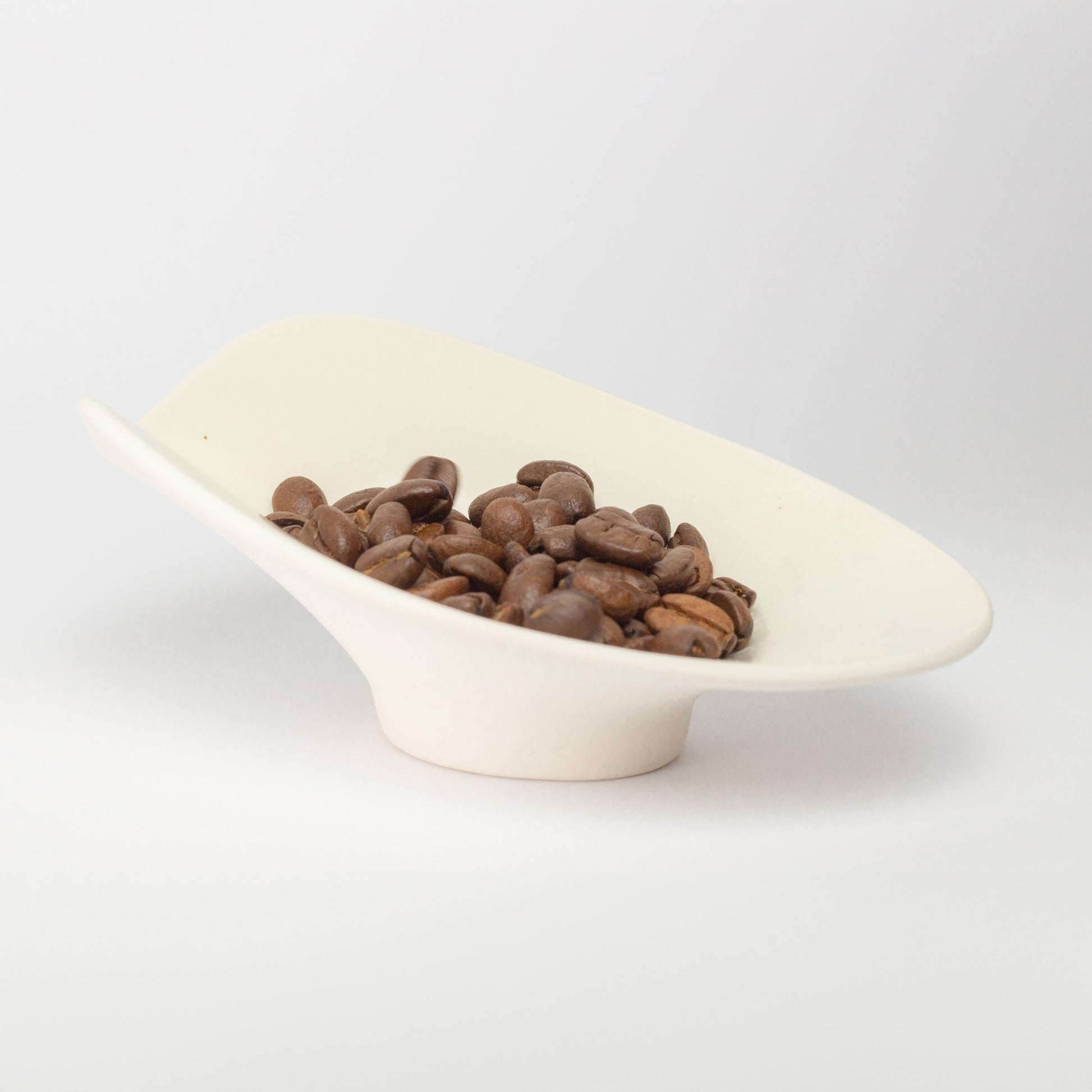 A porcelain bean dosing cup designed to elevate your coffee making experience.