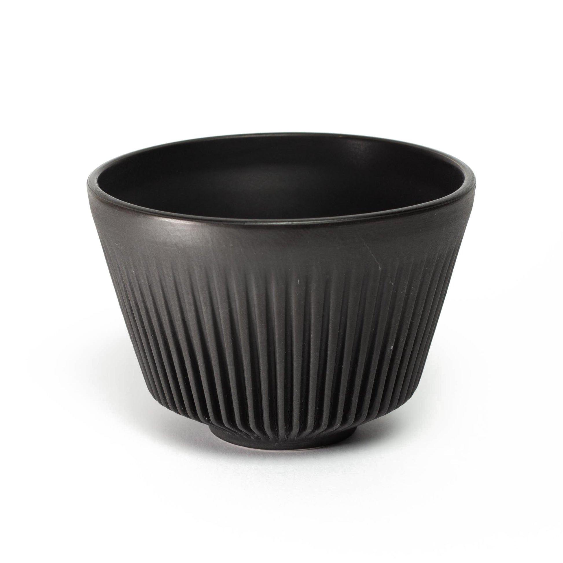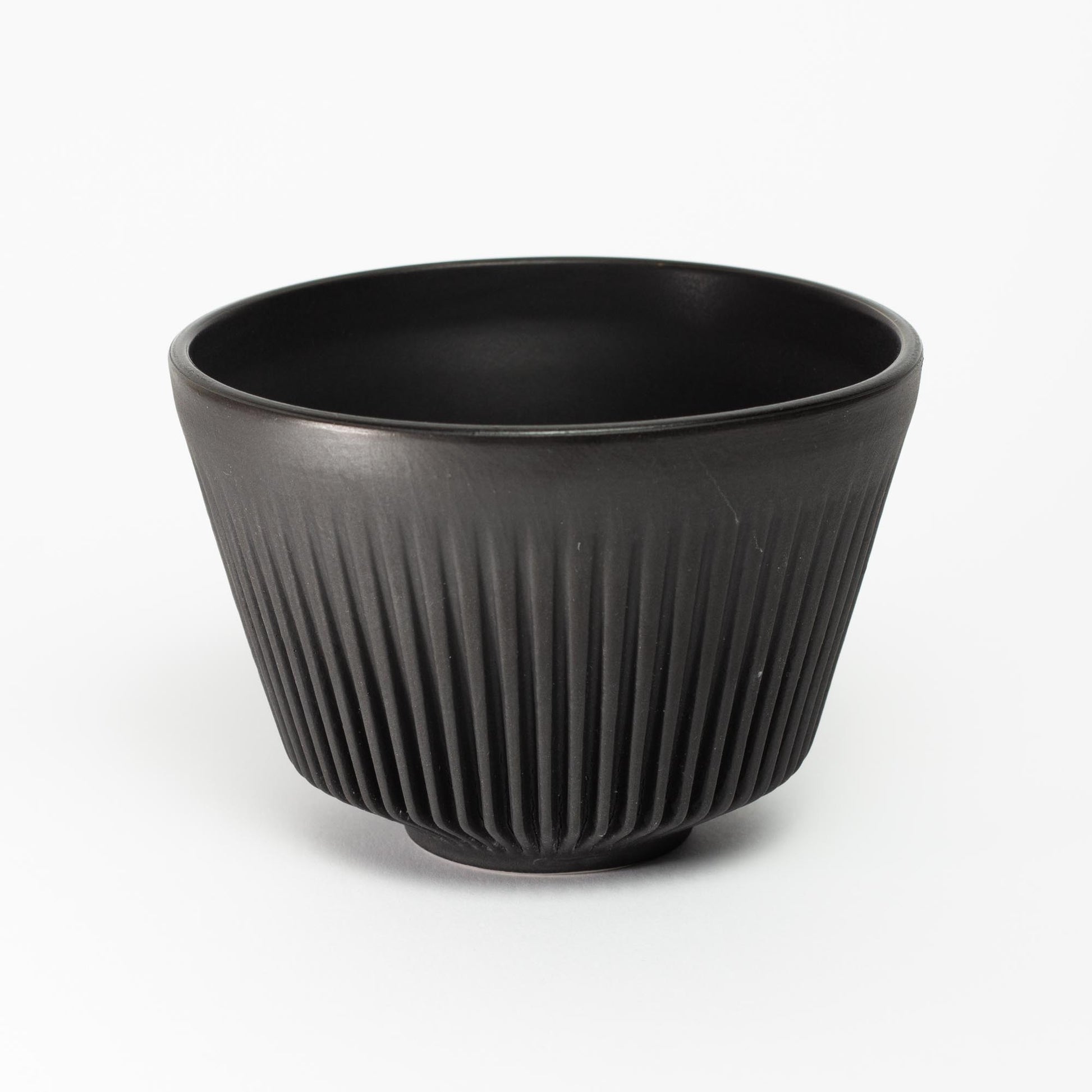 Made from Porcelain, a material that dates back to the Tang dynesty (nearly 1500 years ago). These cups will have the same finish as Mμ – a matt black body with an unglazed exterior and matt black glazed interior that is foodsafe and non-porous. The unglazed exterior adds a little friction, giving a rough tactile feel to the cup as well as introducing variation in tone, making each one unique.